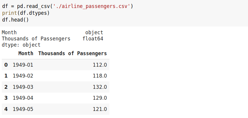 Let’s check out the dataset. This can be done in pandas using the pd.read_csv(‘filepath’) command.